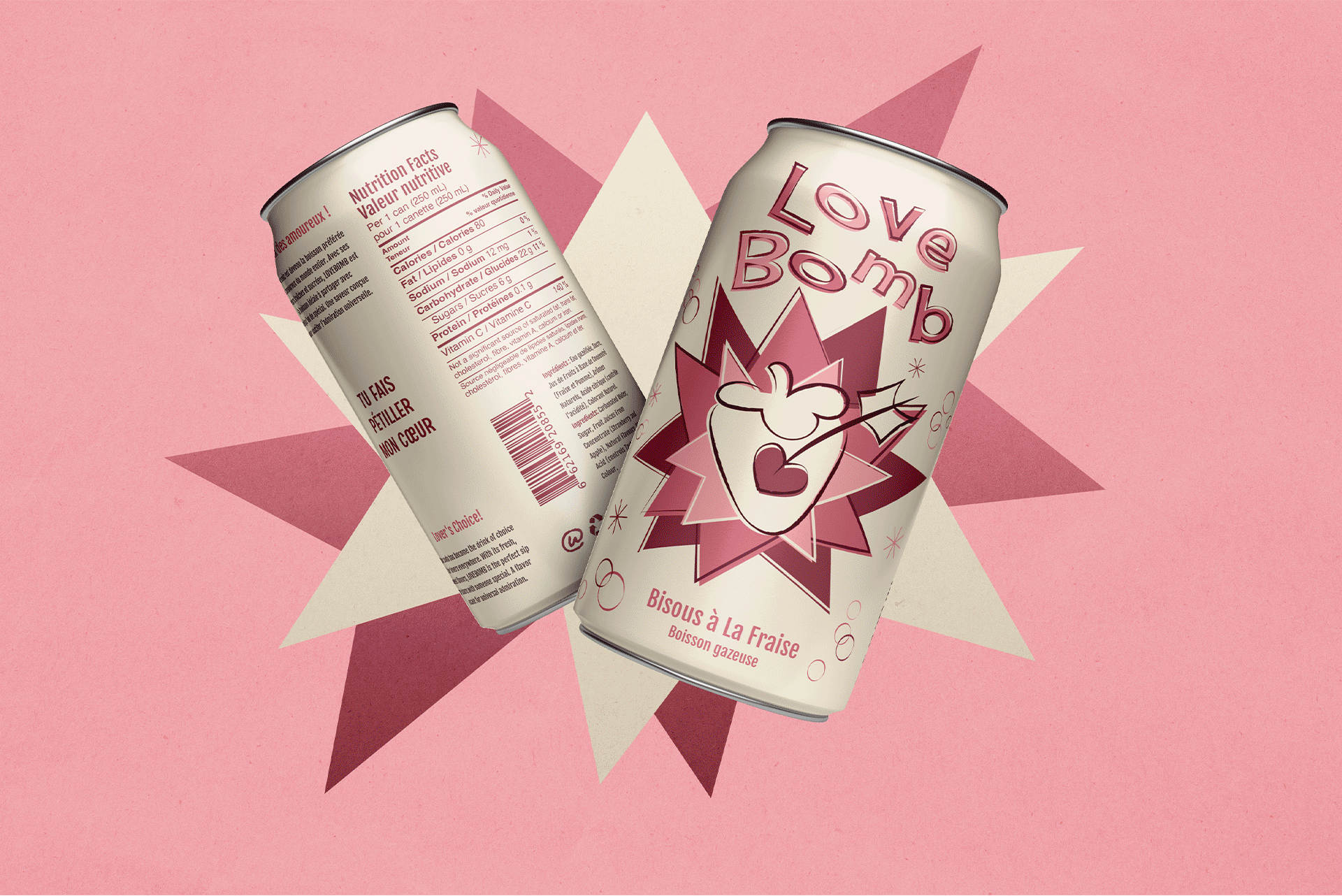 For this project, I was tasked to design a bottle label. Love Bomb is a sweet soda drink following the concept of 1950s/60s retro. This fizzy drink is romantic and perfect for when Valentine’s Day rolls around.